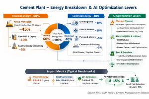 1. Kiln thermal efficiency. SHC in most plants ranges from 3,000–3,500 MJ/ton of clinker. Excess air wastes fuel; too little causes incomplete combustion. AI optimizes this balance continuously, something manual control can’t sustain across shifts.