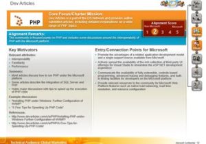 Advaiya researched and analyzed information about top PHP developer communities and categorized communities based on their reach, influence, and alignment i.e. aligned, neutral or competitive to customer products or services. Based on influencer and alignment map, Advaiya created a set of recommendations to engage neutral and competitive communities to change their perception about customer’s offerings and solution. Also created possible entry points / connection points for each community. This helped high influence communities which were opponents or neutral to change their perception about customer’s products or services and building and sustaining relationships.