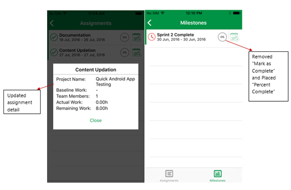 - Assignments and milestones lists now have more information as – Percent Complete, Baseline Work and Team Members.